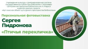 23 июля в окнах центральной городской библиотеки им. К. Маркса открылась фотовыставка могилевского фотографа Сергея Пидронова «Птичья перекличка» в рамках креатив-проекта «Арт-окно как объект культурного пространства библиотеки».