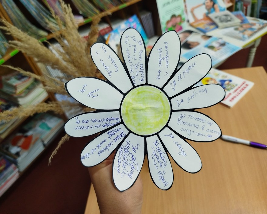 Ребята с удовольствием приняли активное участие в викторине «Хорошо ли я знаю свою маму?», «Закончи пословицу». Особый интерес вызвал творческий конкурс «Ромашка» – на лепестках бумажного цветка дети писали качества своих мам, за которые они их любят: доброту, заботу, ласку, терпение, умение понимать и поддерживать.