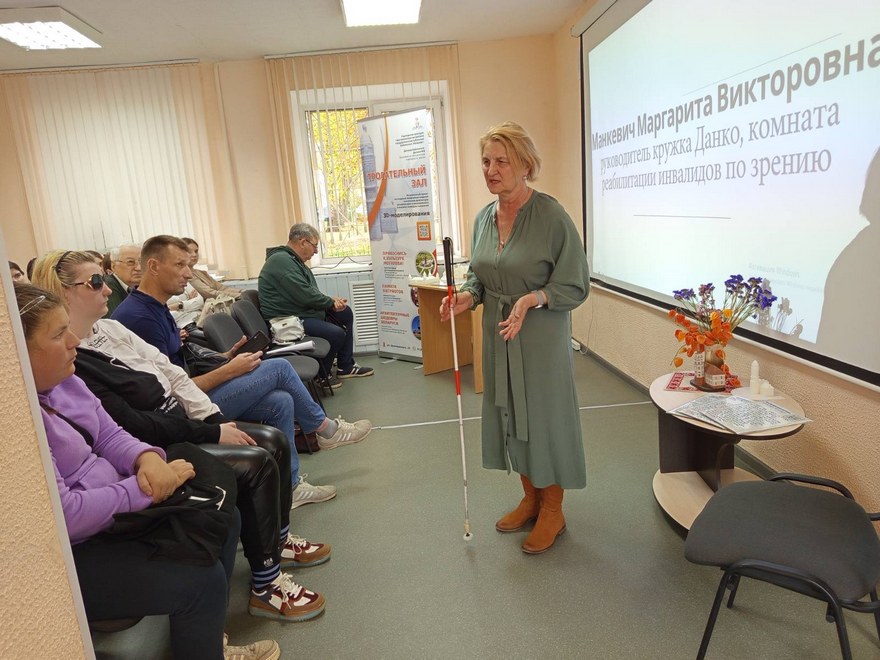 15 октября 2025 года в центральной городской библиотеке им. К. Маркса состоялся круглый стол «Сердцу виден свет добра», приуроченный к Международному дню белой трости. Мероприятие было организовано совместно с учреждением «Центр социального обслуживания населения Ленинского района г. Могилёва».