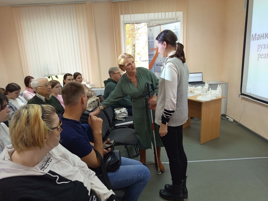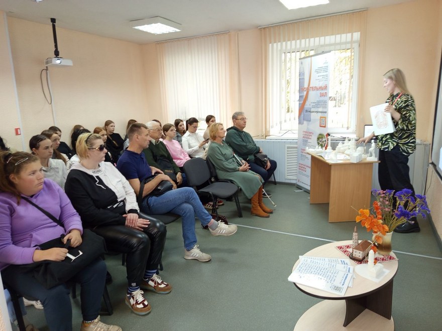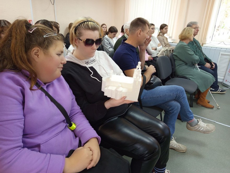 В рамках встречи специалист библиотеки Зенькова Маргарита Михайловна представила инклюзивный проект для незрячих и слабовидящих людей из числа детей и молодёжи «Трогательный зал», получивший в 2024 году грант Президента Республики Беларусь в сфере молодёжной политики.
