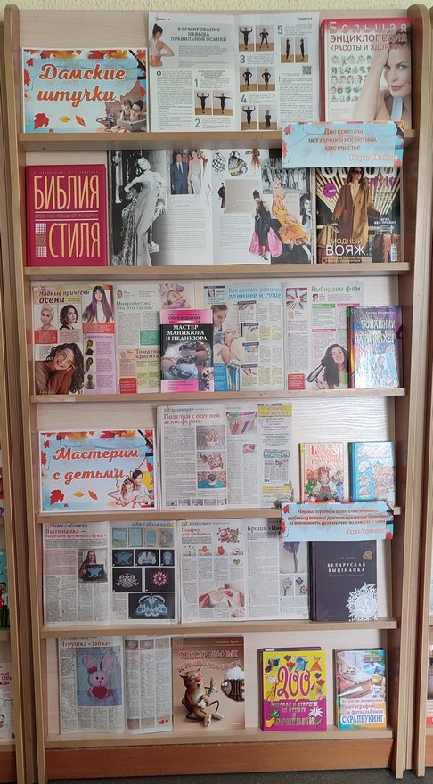 На ней представлена литература, касающаяся самых важных тем как для состоявшихся родителей, так и для будущих. На полках размещены материалы о построении семейных отношений, роли матери и отца, воспитании детей и соблюдении семейных традиций, а интересные статьи из периодических и книжных изданий о создании комфорта и уюта в доме, моде и красоте, правильном питании и семейных рецептах не оставят никого равнодушными.