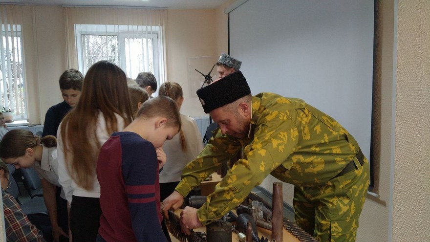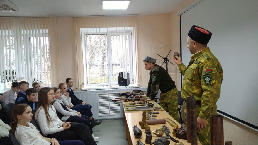 Тема встречи «Популяризация деятельности клуба Казачья Община Могилевщины ЕРМАКЪ и казачьего движения на Могилевщине». Учащиеся получили уникальную возможность ближе познакомиться с казаками, узнать об истории казачества на Могилевщине, его роли в культурной и общественной жизни региона. Особое внимание на встрече было уделено выставке c экспонатами, рассказывающей о героических страницах Великой Отечественной войны. Ребята смогли не просто увидеть экспонаты, а прикоснуться к подлинным артефактам.