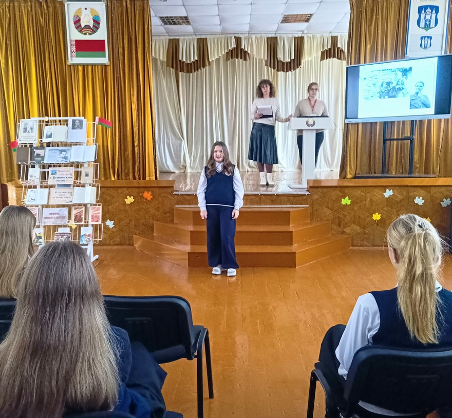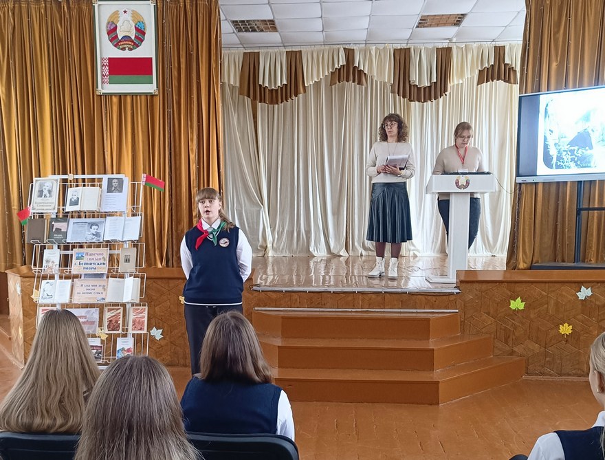 25 ноября в рамках литературного юбилея «Слова, полные жизни», посвященного 110-летию со дня рождения Константина Михайловича Симонова, в ГУО «Средняя школа №5 г. Могилева» для учащихся 7-х классов был проведен литературный час «Да, мы живем, не забывая».