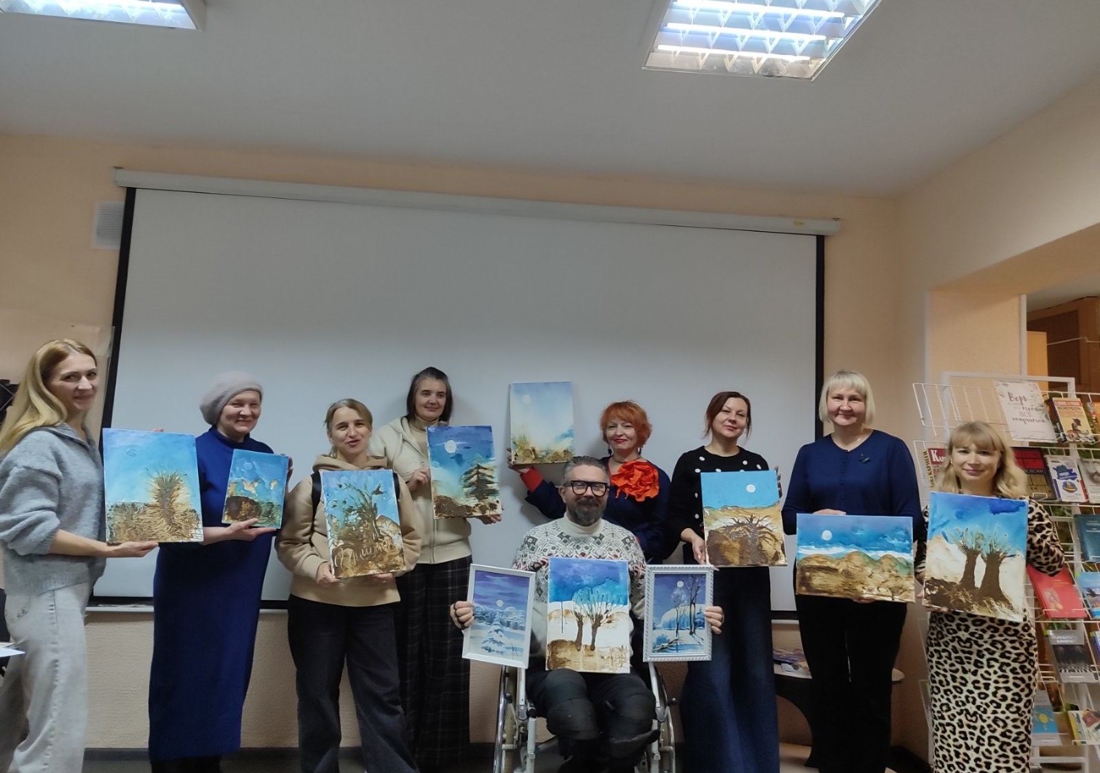 Кульминацией мероприятия стало выступление Леонида Сломнюка, известного также как Ассад Делькор (Assad Del Cor). Леонид откровенно рассказал о своем пути и вызовах, с которыми столкнулся, лишившись ног, а затем зарядил всех творчеством, проведя мастер-класс по созданию живописной работы «Зимняя история». Это была волшебная, творческая атмосфера. Каждая картина получилась особенной и со своим глубоким смыслом.