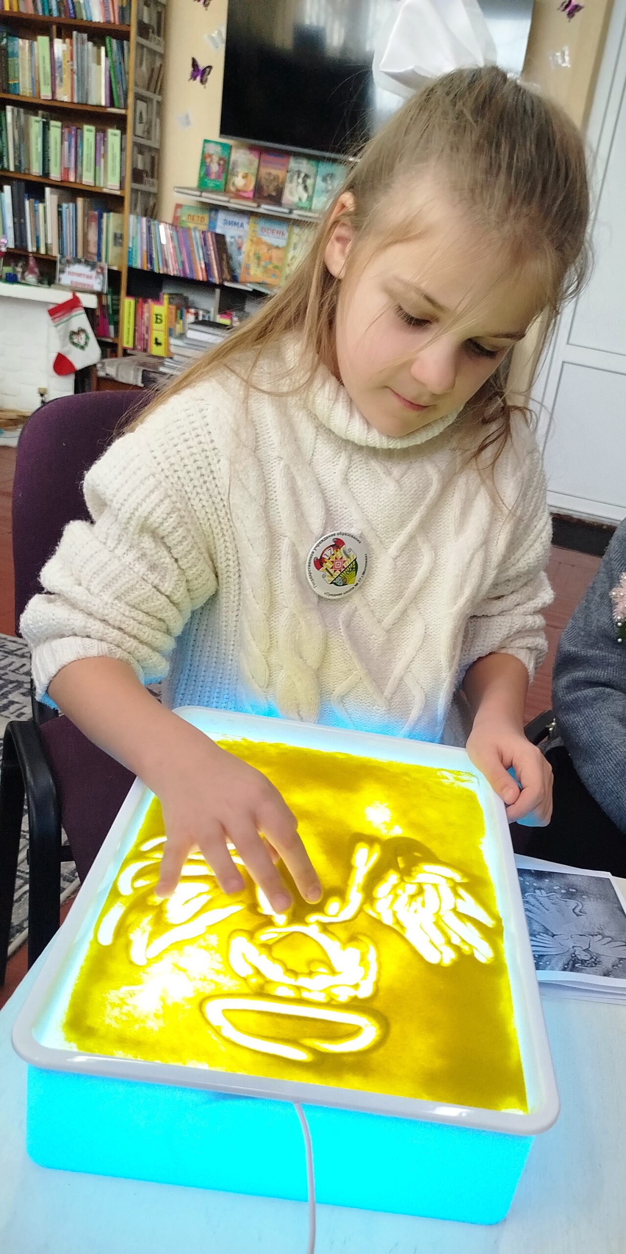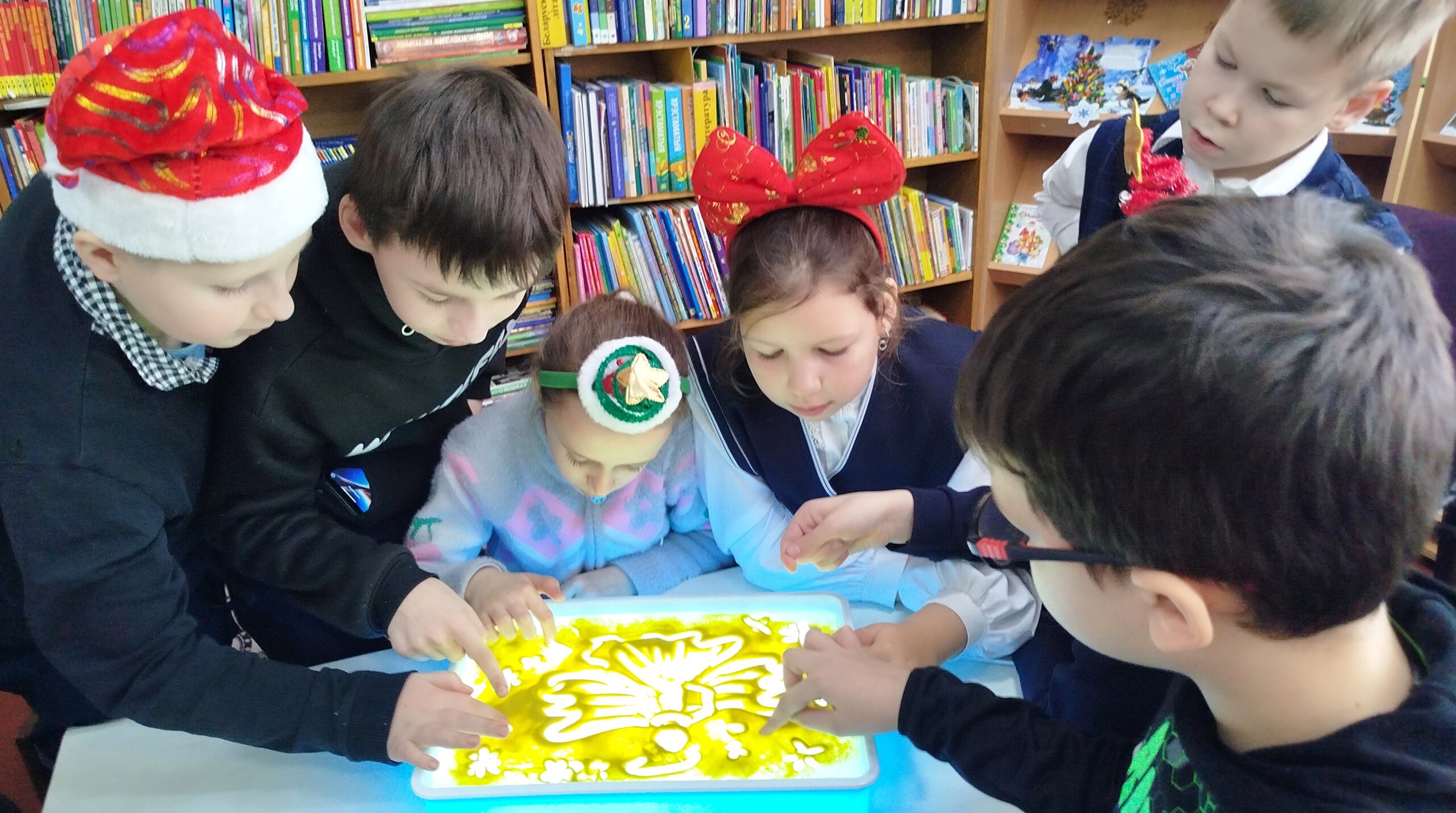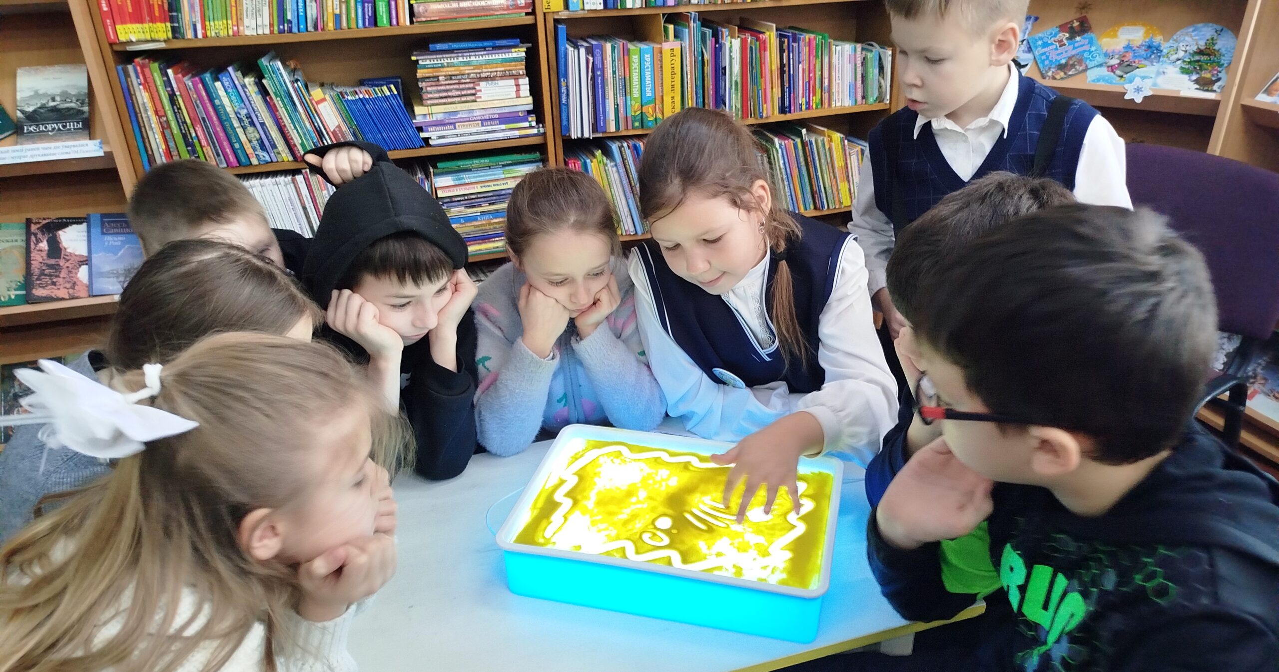 В дни новогодних и рождественских праздников в стенах библиотеки-филиала № 1 им. Я.Коласа развернулось настоящее волшебство. Для юных читателей прошло творческое мероприятие песочная арт-терапия «Чудеса Рождества».