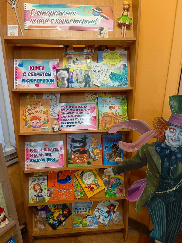 Также в течении дня в библиотеке работали организованные тематические выставки: «Осторожно: книги с характером», «Возьми, если…»