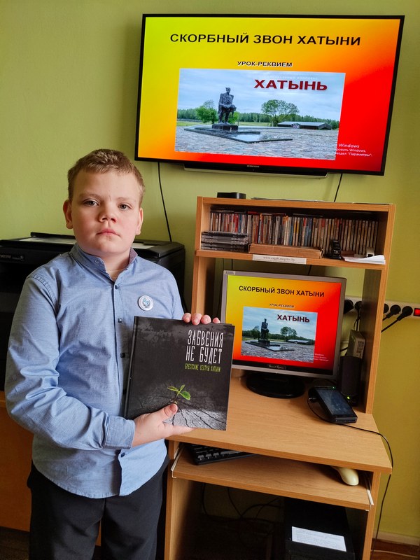 Для учащихся 5 класса ГУО «Средняя школа № 19 г. Могилева им. М.Ф.Сафонова» прошел урок-реквием «Скорбный звон Хатыни». В ходе мероприятия ребятам рассказали, что 22 марта 1943 года объятая пламенем деревня вместе с жителями была навсегда стерта с лица земли и вошла в историю как символ бесчеловечности нацистов и их пособников, о выживших в тех страшных событиях, как создавался мемориальный комплекс «Хатынь», какие памятники есть на территории мемориала. Также ребята узнали и о других трагических местах на карте Беларуси – Озаричи, Дальва, Ола, Тростенец, Урочище Пески, Красный Берег.