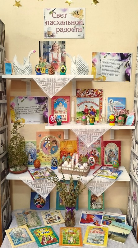 На выставке каждый сможет узнать, что такое ПАСХА, как ее отмечают, какие у есть традиции и символы. Также представлены книги, рассказывающие о празднике, дружбе, заботе и любви к близким.