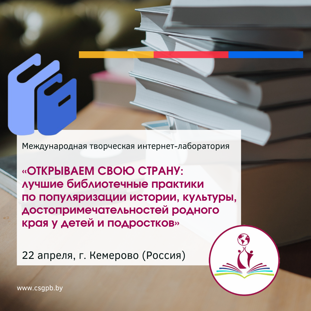 «Открываем свою страну: лучшие библиотечные практики по популяризации истории, культуры, достопримечательностей родного края у детей и подростков» под таким названием 22 апреля состоялась Международная творческая интернет-лаборатория (г. Кемерово, Россия).